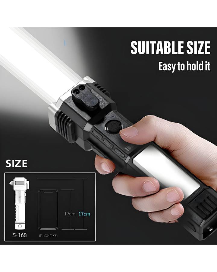 این چراغ قوه دستی نه تنها منبع نوری قدرتمند با رنگ مهتابی است، بلکه به عنوان یک “جعبه ابزار اضطراری” در دستان شما عمل میکند. اگر اهل سفر هستید یا به امنیت خودروی خود اهمیت میدهید، این محصول دقیقاً همان چیزی است که به آن نیاز دارید.