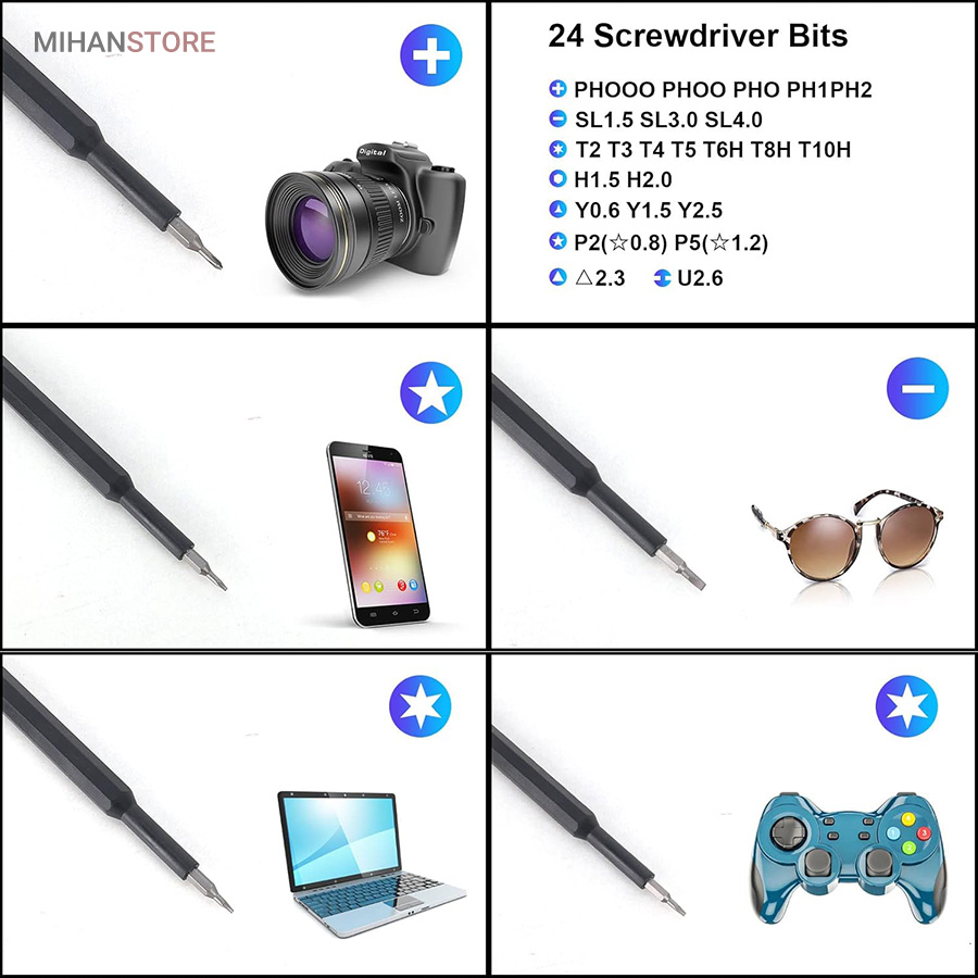 • مناسب برای اسمبل و تعمیرات ظریف: موبایل، لپتاپ، کیس، ساعت، عینک، تبلت، کنسول و…