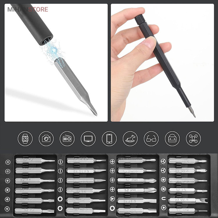 این ست مخصوص اسمبل کامپیوتر، تعمیرات موبایل، ساعت، کیس، لپتاپ، دوربین، کنسول بازی، اسباببازی و تمامی کارهای ظریف و حساس طراحی شده است. وجود سریهای متنوع و کیفیت بالای ساخت، این مجموعه را به یک انتخاب ایدهآل برای کارهای دقیق تبدیل میکند.